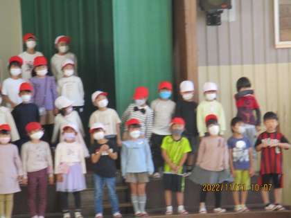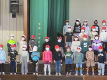 学年で一つになって「もみじ」を歌います!