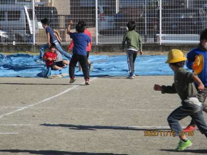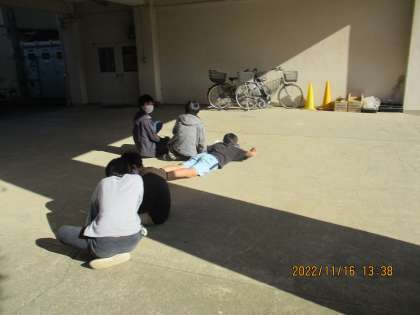 ミニ校庭、日向で読書と自主学習(ピロティ—)などなど、