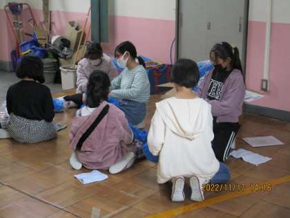 今日、お便りしました保護者鑑賞日当日の靴カバーの準備も行いました。