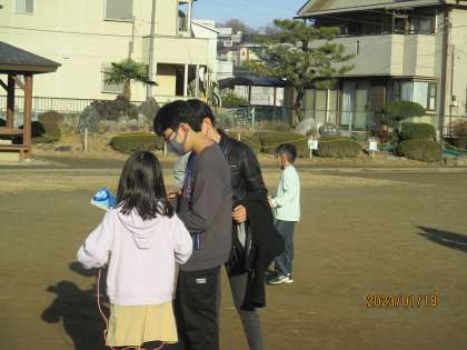 下学年の子供ができるようになると一緒喜び、また、そうするとできるようになるのか相談し合っています。