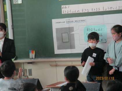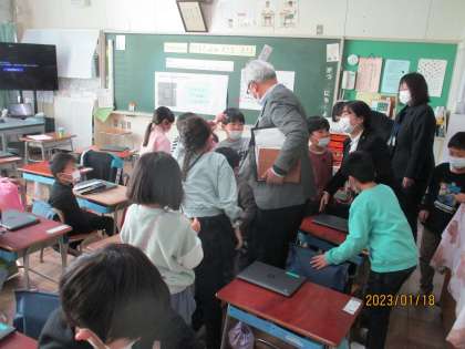 子供たちは、やる氣マンマンで、豊かな感情言語を身に付けながら鑑賞交流ができていました。授業後には、講師の先生に子供たちが集まり、授業のことをたくさんはなしていました。教職員も図画工作の授業づくりや子供たちにとっての意義を学びました。
