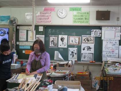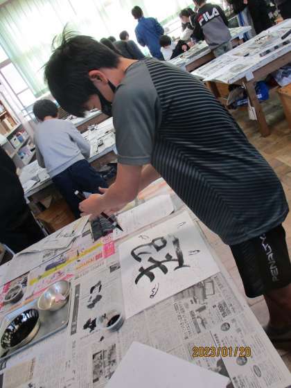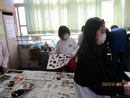 墨汁を使って平面作品ですが、漢字について自分のイメージを立体的に表現しています。