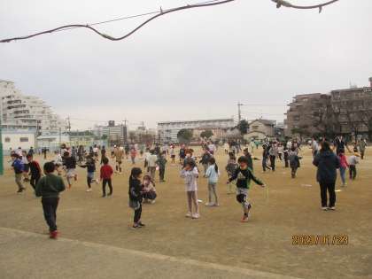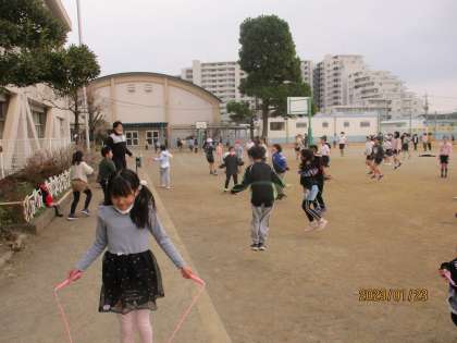 寒い中でしたが、今日も多くの十小っこがなわとびに挑戦しました!