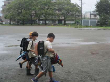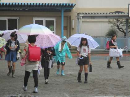 3年生から6年生の下校時は、小降りからくもり空になりました!