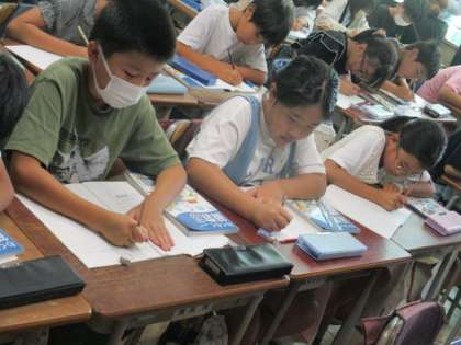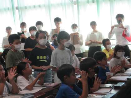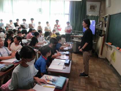 授業改善のための授業研究第三弾である、ホップ・ステップ→ジャンプの授業を5年生で行いました。35人の市内各校や教職大学院生も来校しての授業研究となりました。