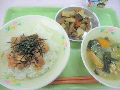 今日は旬のさといもを使った煮物です。さといものぬめりには免疫力の向上、粘膜の保護をする作用があります。旬の食材を食べて元気に過ごしましょう。」