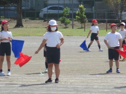 大きく振られた旗、きびきび旗、
