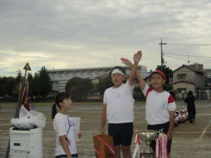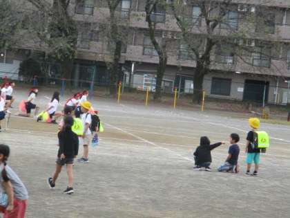 係児童は、全校練習前の練習にも真剣に臨んでいます。
