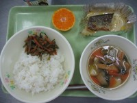 🌰今日の献立🌰・にんじんごはん・さわらの香味焼き・きのこ汁・きんぴらごぼう・果物...