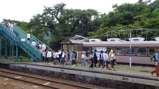 富弘美術館の見学を終え、昼食場所の列車のレストラン「清流」につきました。