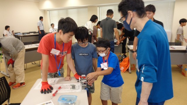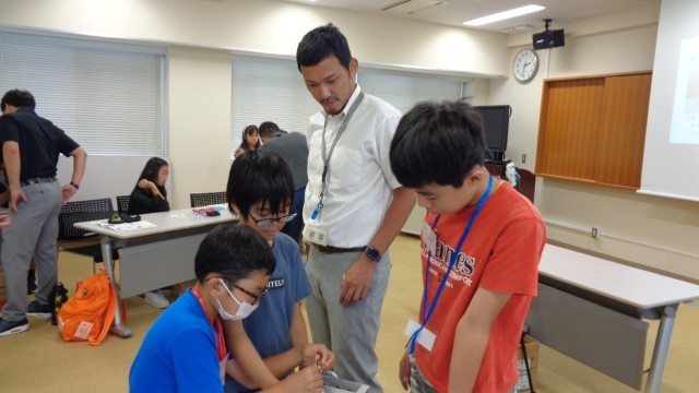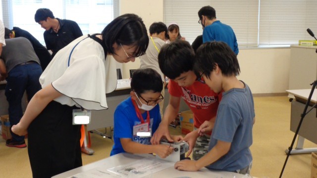 ギアを組み合わせて、軽い力で重りを持ち上げます。