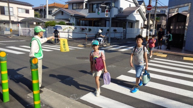 安全ボランティアの方も立ってくれています。ありがとうございます。