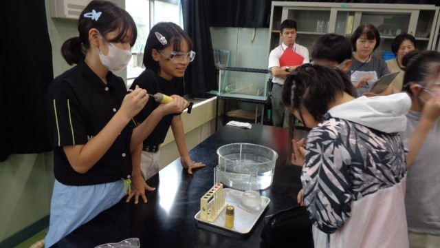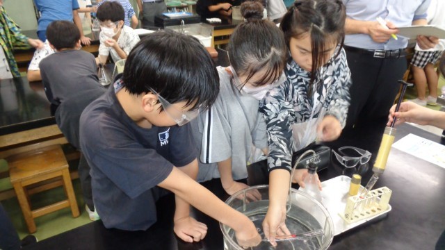 子どもたちが調べたい方法のグループに参加して実験をしています。
