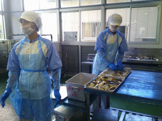 2枚目の写真は昨日紹介した実習生の様子です。今日は鯖の調理補助に入ってもらいました。