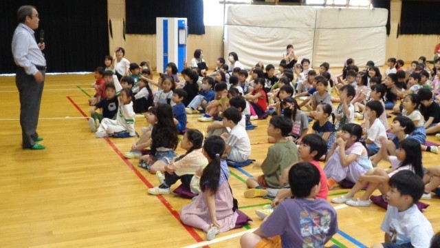 26日(金)は学校公開でした。全学年でセーフティ教室を実施しました。写真は低学年のようすです。連れ去り防止について学んでいました。