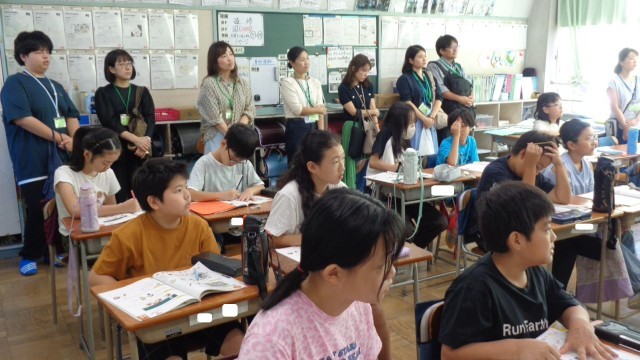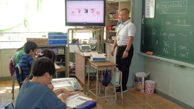5年1組のようすです。英語の授業で、Can you~? I can~. の学習をしていました。