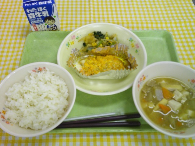 夕焼小焼やき(白身魚に、にんじんマヨソースをかけた料理)