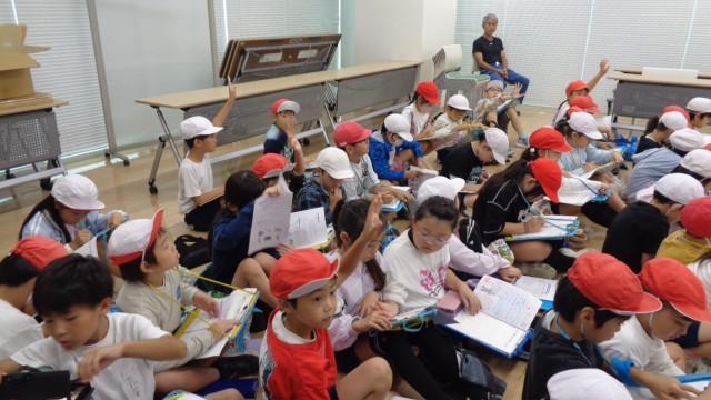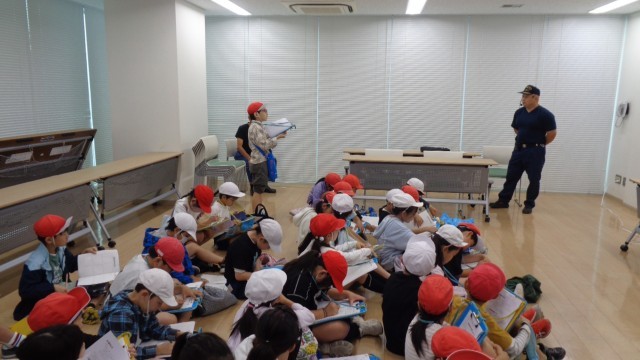 ビデオが終わると、質問タイムとなりました。質問する子がたくさんいて感心しました。驚いたのは八王子消防署は分署も入れると、世界で一番働いている人数の多い消防署だということです。