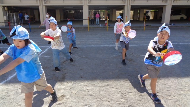 中学年のエイサーです。元気よく踊りました。