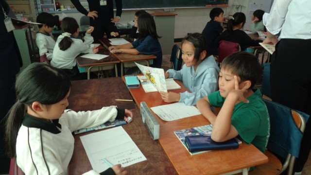 どんな絵文字ができるのか楽しみですね。授業後は指導担当の先生と授業の振り返りを行いました。