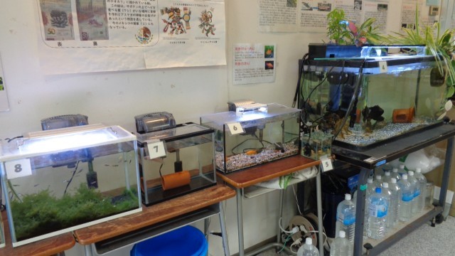 教育センターの1階にあるアクアリウムスペースです。飼われている水生生物や魚について学習しました。