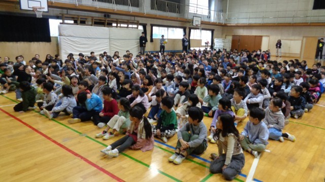 11月13日、保健委員会が「保健集会」を開いてくれました。はじめは集会委員が元気よく始まりの挨拶をしました。