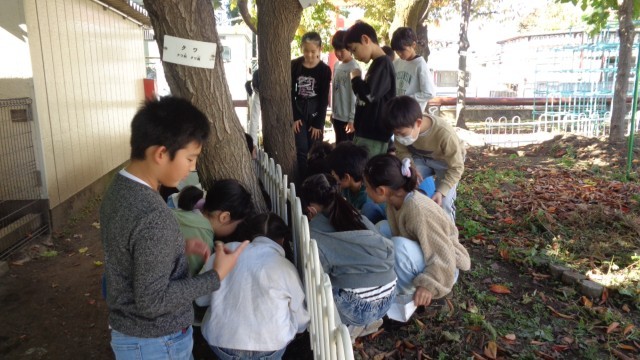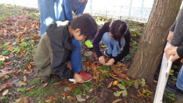 ミニ公園に行くと、3年2組の子たちが桑の木の根元に集まっていました。わけを聞くと、飼っていたカイコの眉の中にいた蛾やさなぎを埋めているそうです。命を大切に思う優しい心に感激しました。