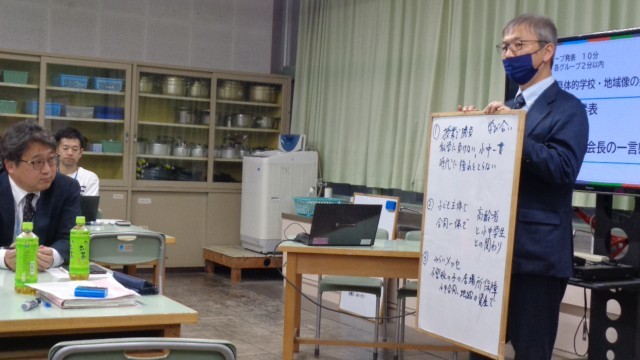 その後、この日のテーマである「10年後の学校の姿」を視野にした「地域と学校の連携、協働」をテーマとした話し合いがされました。