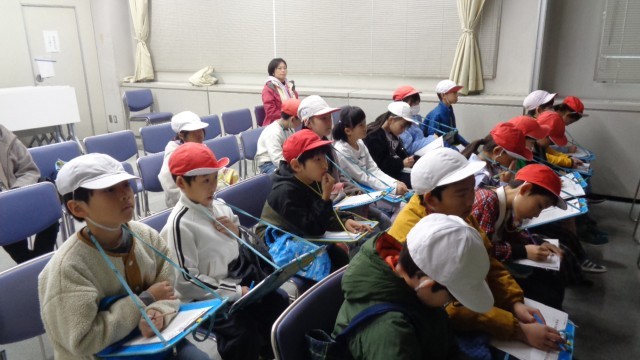1階の研修室ではDVDを使って、様々な警察の仕事を学ぶことができました。子どもたちは視聴後、たくさんの質問をしていました。質問に答えてくださった女性隊員さんも白バイ隊員だそうです。