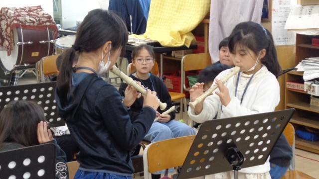 ペアで主旋律と副旋律に分かれ、吹いています。