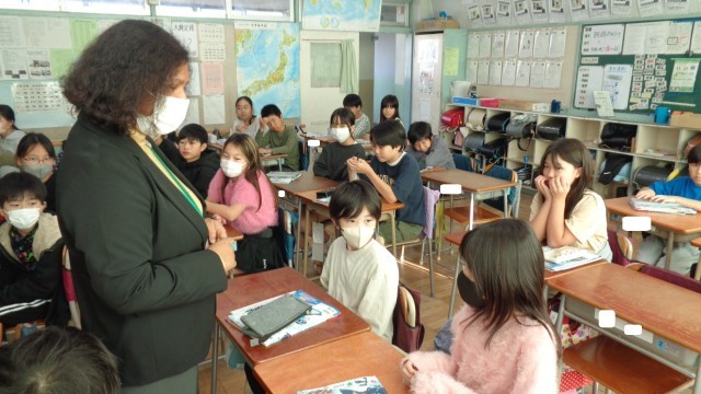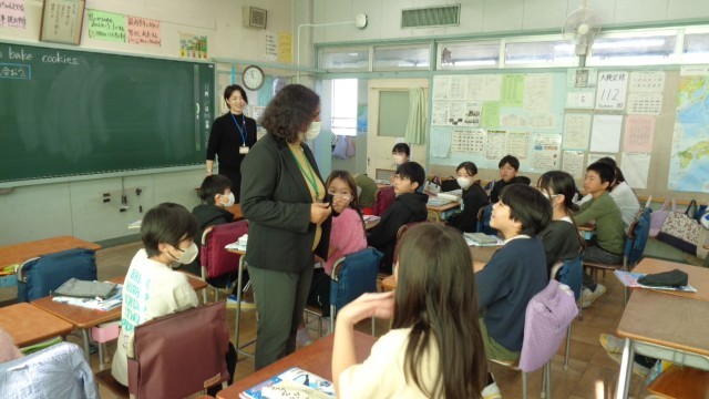 5年3組が英語の授業を受けていました。ALTの先生がいます。