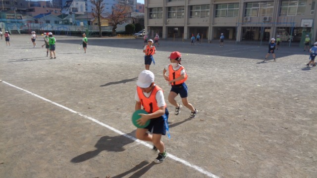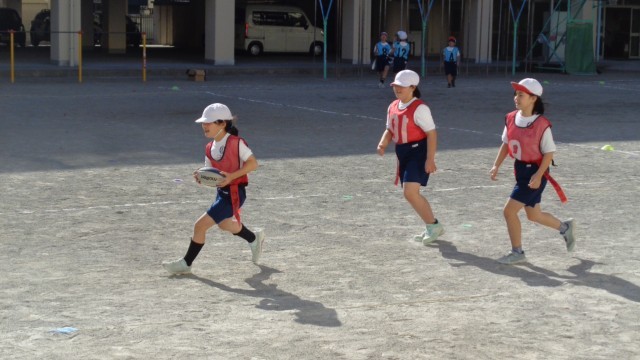 校庭では4の1がタグラグビーをしていました。回を重ねるごとにどんどん上手になっていくのが分かります。
