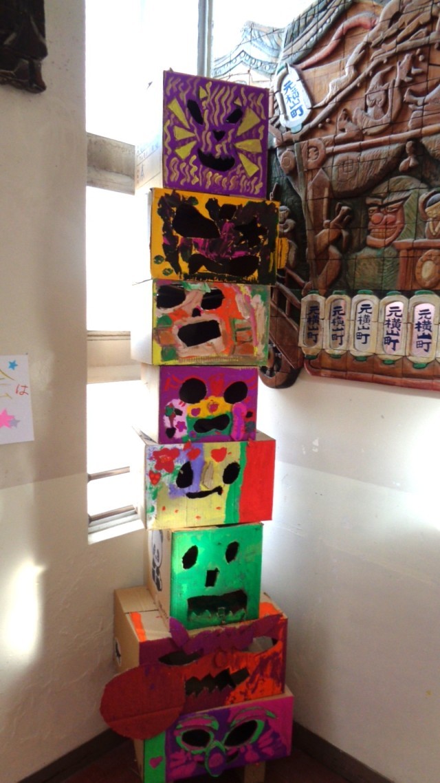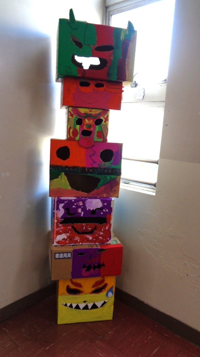 2年生の最後の作品は協同作業で作った「ダンボールトーテムポール」です。