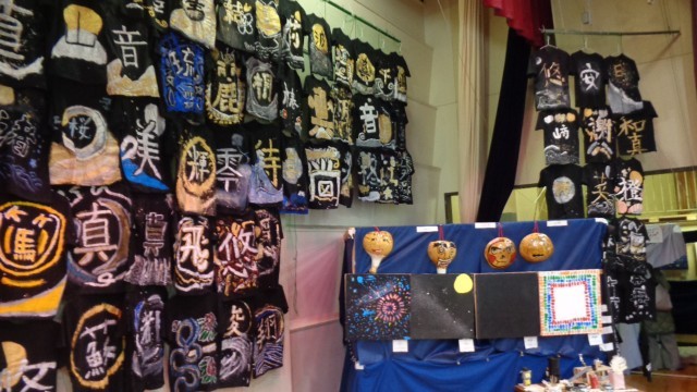 5・6年生が運動会で着たTシャツも展示されていました。舞台の壁いっぱいに展示されていました。