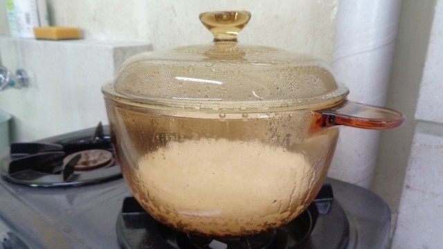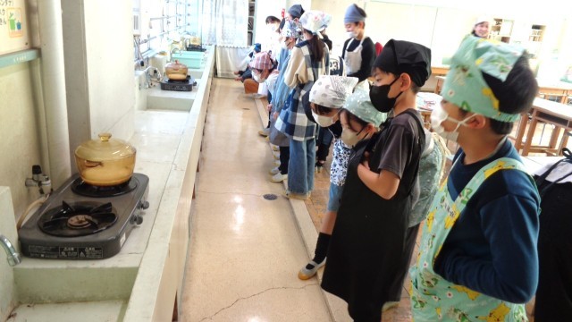 炊けていくようすが外からしっかりと観察できていいですね。気が付いたことをノートに記録していきます。