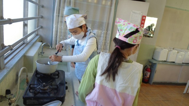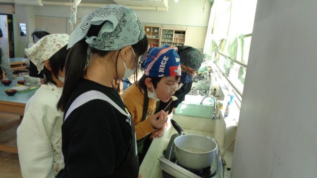 2組の子たちも、協力しながら手際よくお味噌汁を作っていました。
