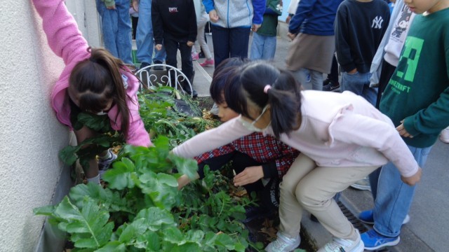 12月19日朝、3年生が育てていた大根の収穫体験をしました。