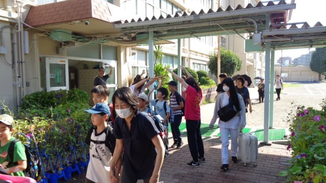 職員玄関前ではサポーターさんが見送りのアーチを作ってくれました。ありがとうございました。