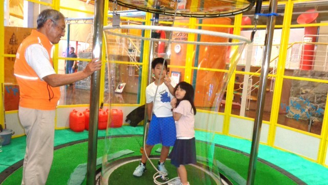 体全体を包んでくれる大型シャボン玉の中に入りました。すごいですね。