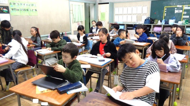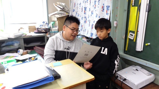3年3組です。あゆみを渡していました。待っている子は自習です。さすが3年生です。