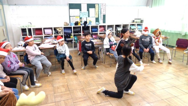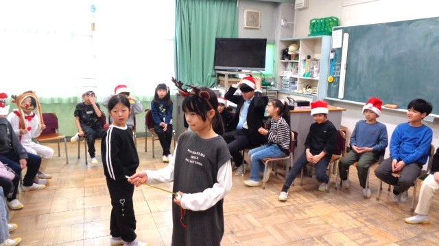 本日の最後の記事は3年1組です。お楽しみ会をしていました。先生もサンタの帽子をかぶってました。
