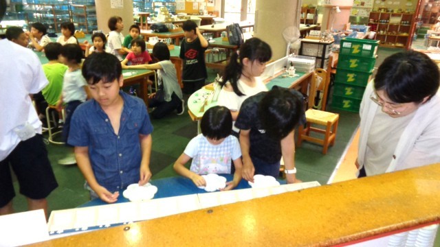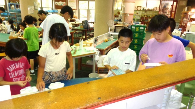 まずはガラス細工の材料を選んでいます。どんな模様にするか迷いますね。