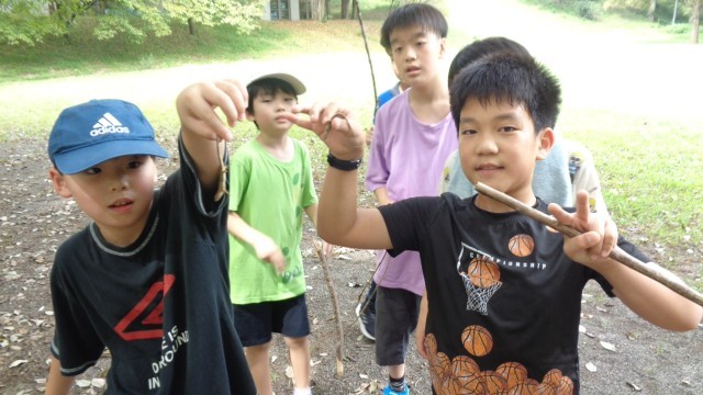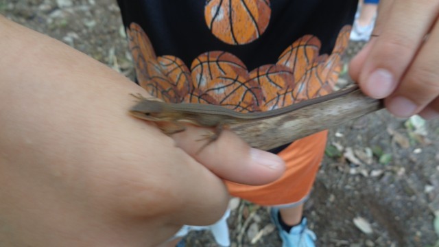 子どもたちは虫探しの名人ですね。カナヘビさんです。最後にきちんと逃がしてあげました。