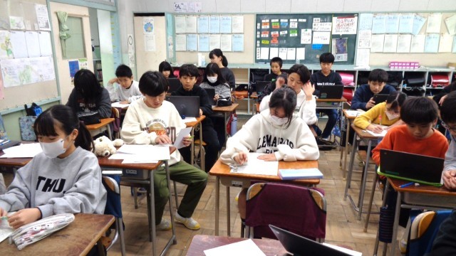 6年1組です。あゆみを渡していました。