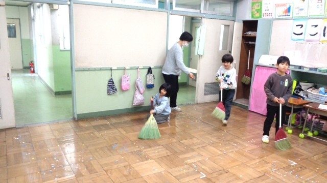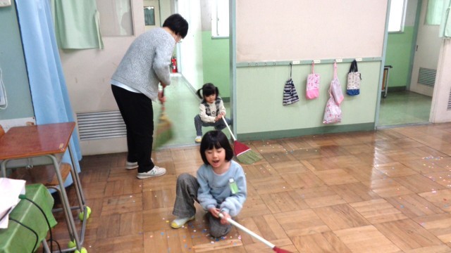 わかば学級1組です。お掃除の練習中でした。