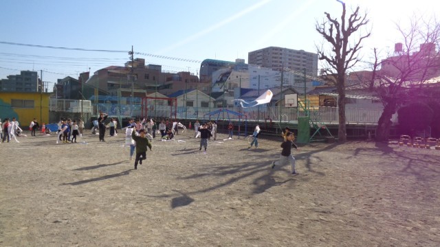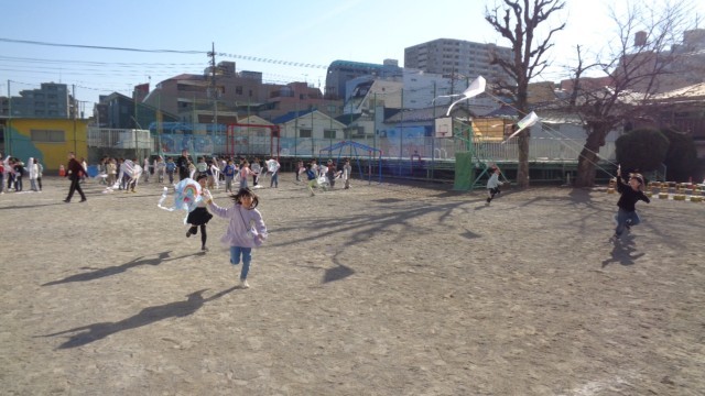 子どもたちは自分の手作りを凧を、嬉しそうにあげていました。