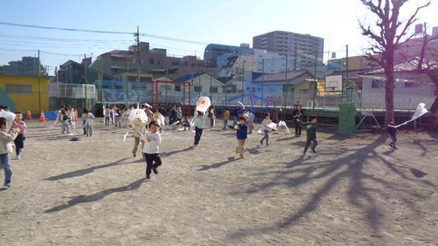 元気に凧あげ中です。