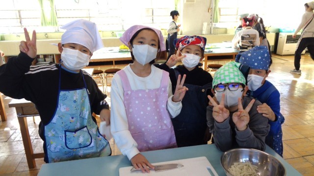 自分たちで大根を千切りにしています。