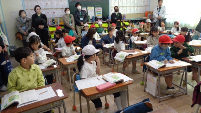 1年1組です。国語で文を作って発表する授業でした。