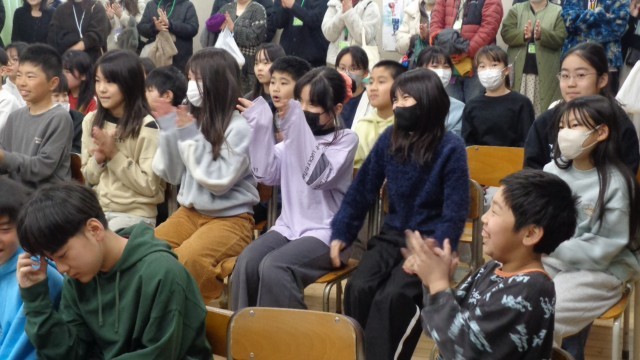 「美しい日本語の話し方教室」という授業でした。さすが劇団四季の皆さんです。子どもたちの顔が輝いていました。